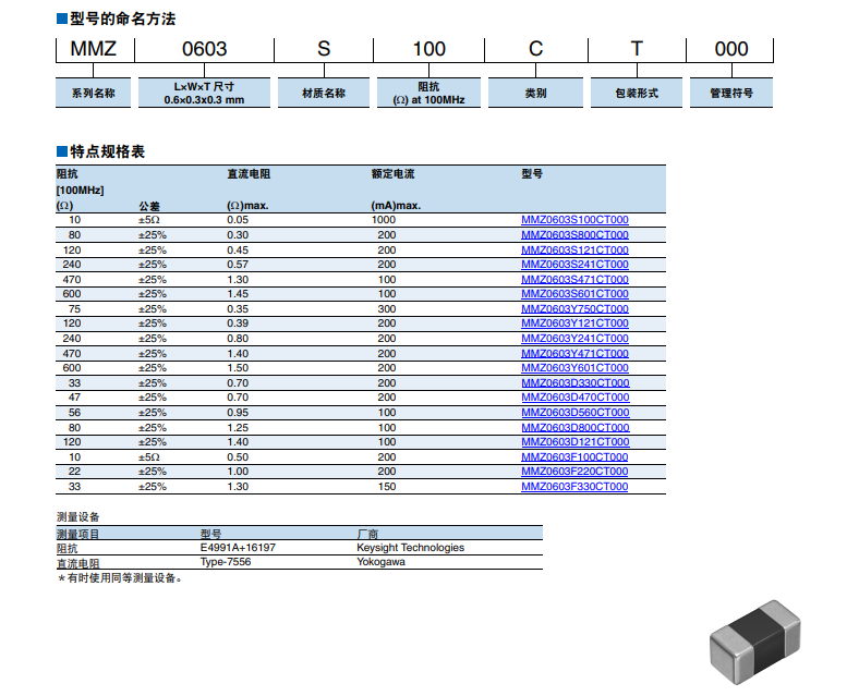 1、MMZ表示該系列的貼片磁珠元件,是由一家知名的磁性材料制造商TDK生產(chǎn)的。
